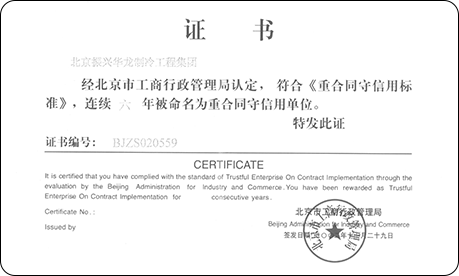 2002年,集團被北京市工商局授予“連續六年重合同守信用”證書